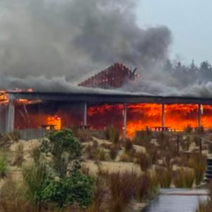 A fire tore through the restaurant at Te Arai Links Sunday morning, leaving the building destroyed. Fire...